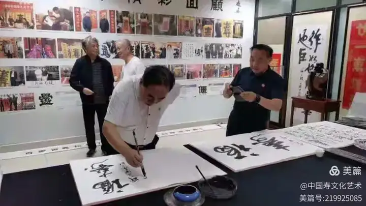 济南书法界的同仁赵文朝,张宝珠,戴月,荆向海,张国英,李福增,王振范,王克泉,张克华,肖军,王升峰、吴跃,杨苦云先生,陈媛女士都亲临工作室参观指,并现场书写墨宝指导寿书法艺术的发扬广大。