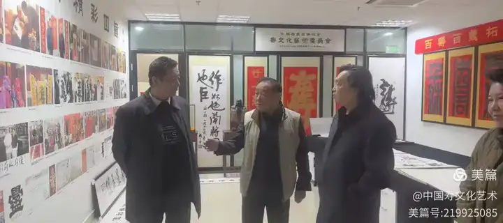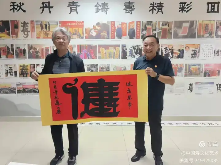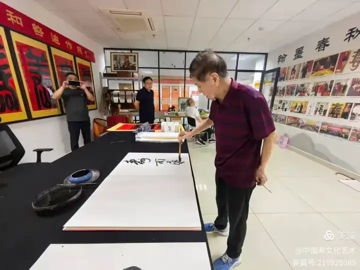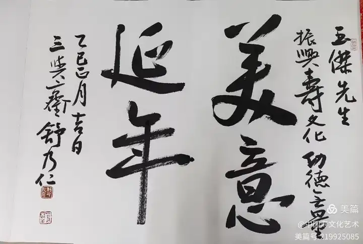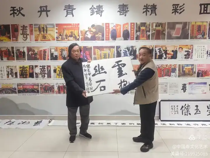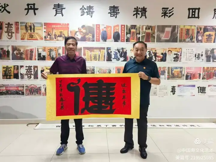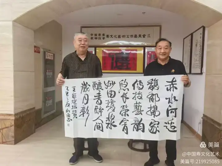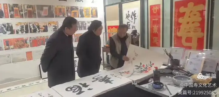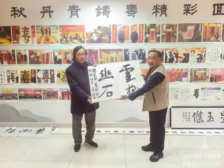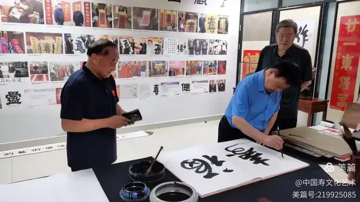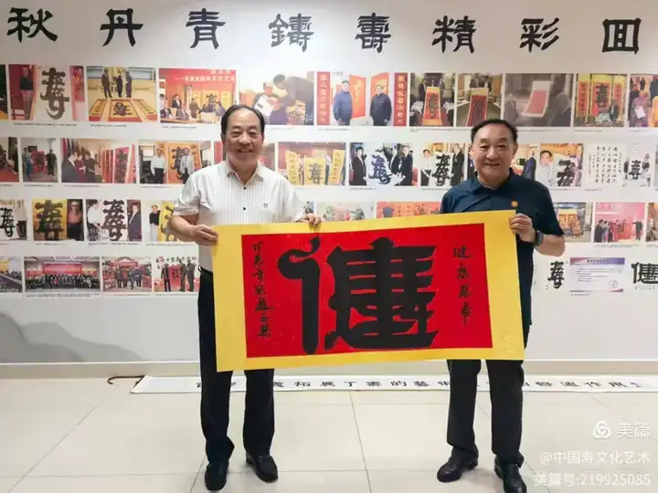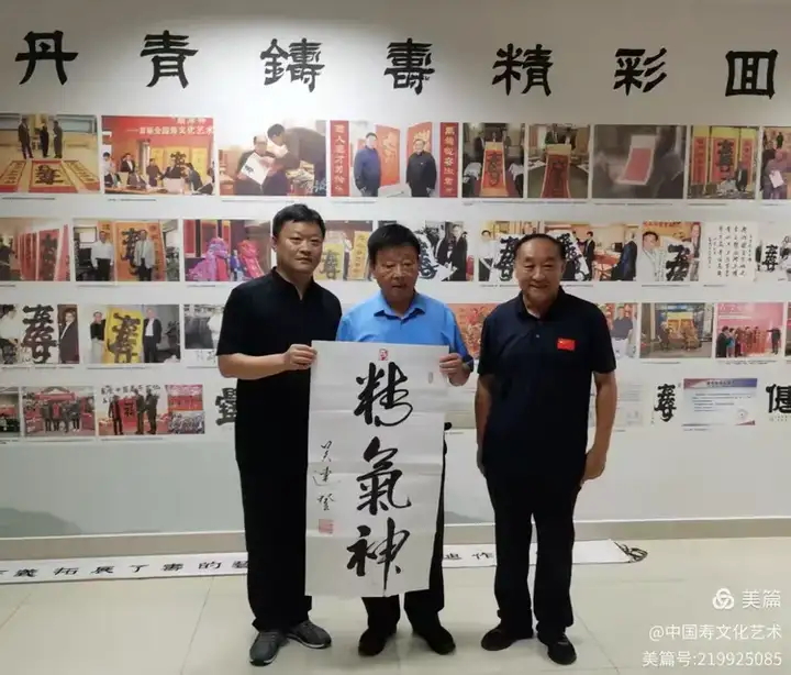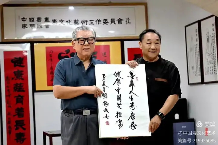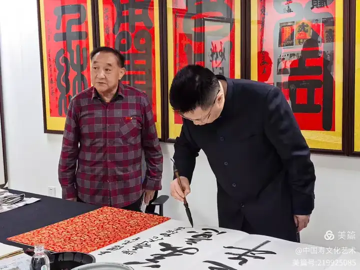 中国书画家联谊会主席舒乃仁先生,秘书长王勇先生一同指导工作室启用,舒乃仁先生书写了 “美意延年” 祝贺寿文化书法艺术弘扬广大。