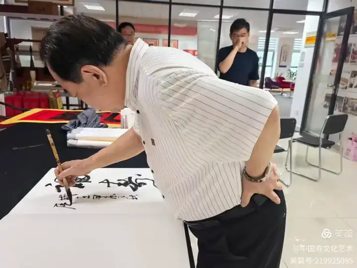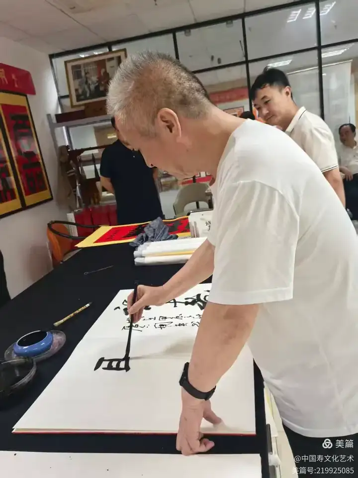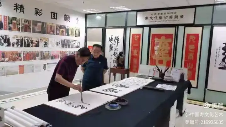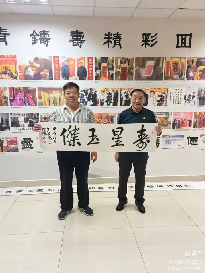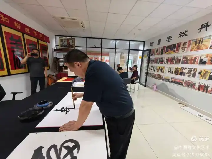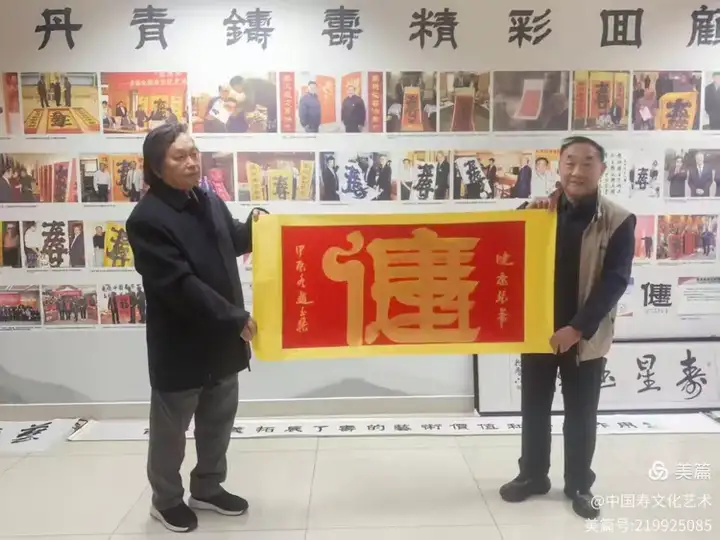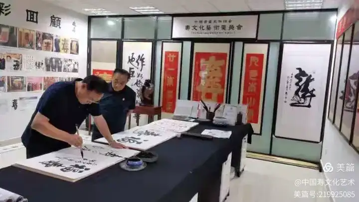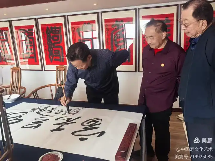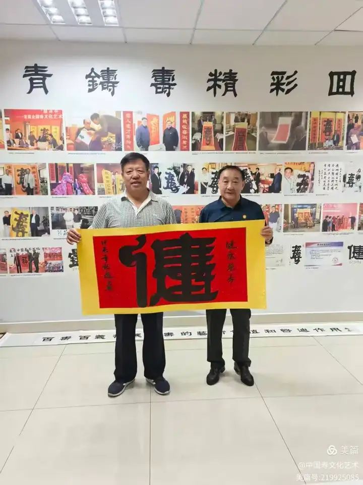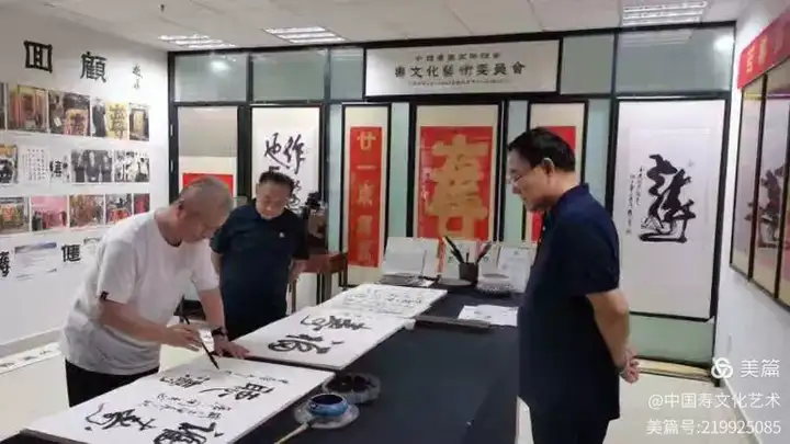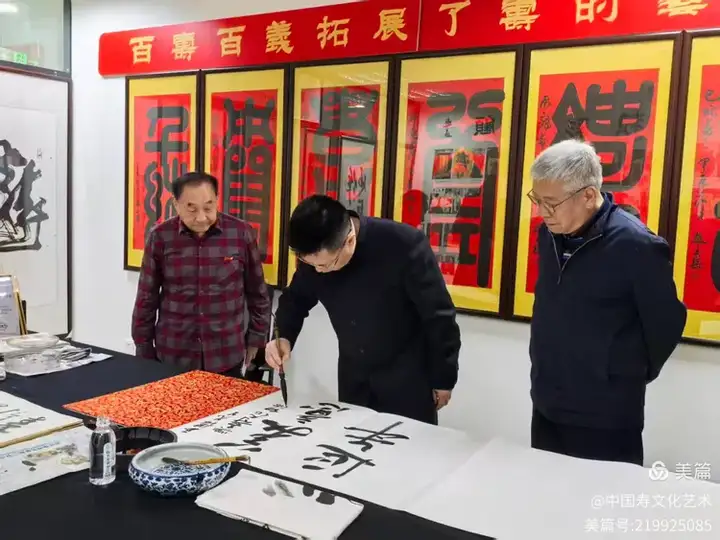 中国书画家联谊会寿书画艺术委员会在会长赵玉杰和同仁的共同努力下,近几年在《健康中国》的伟大战略实施中积极探讨寿文化书法艺术的发扬广大,服务民生,造福社会赢得了社会各界的广泛赞同,自去年以来先后在济南设立了 “济南高新区自贸产业园寿书法艺术工作室” “唐王渔场康养寿书法艺术工作室” “鸿腾国际大酒店寿书法艺术工作室” “王家烧坊寿书法艺术工作室” 等四处为社会发展服务交流之处。