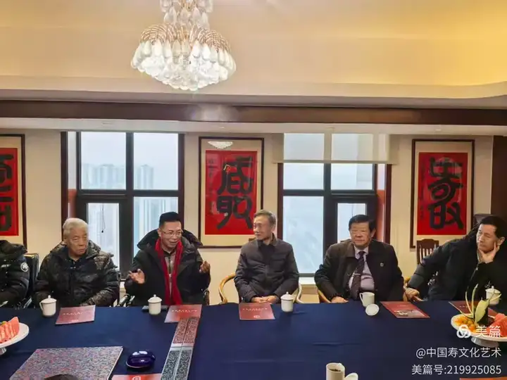 原主席的生活管家吴连登先生到工作室参观指导,亲书 “福寿” 二字以示祝贺,并欣然被聘为寿书画艺术委员会名誉顾问。