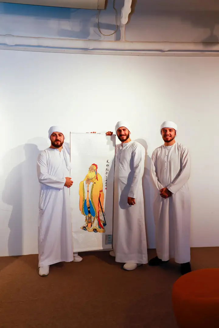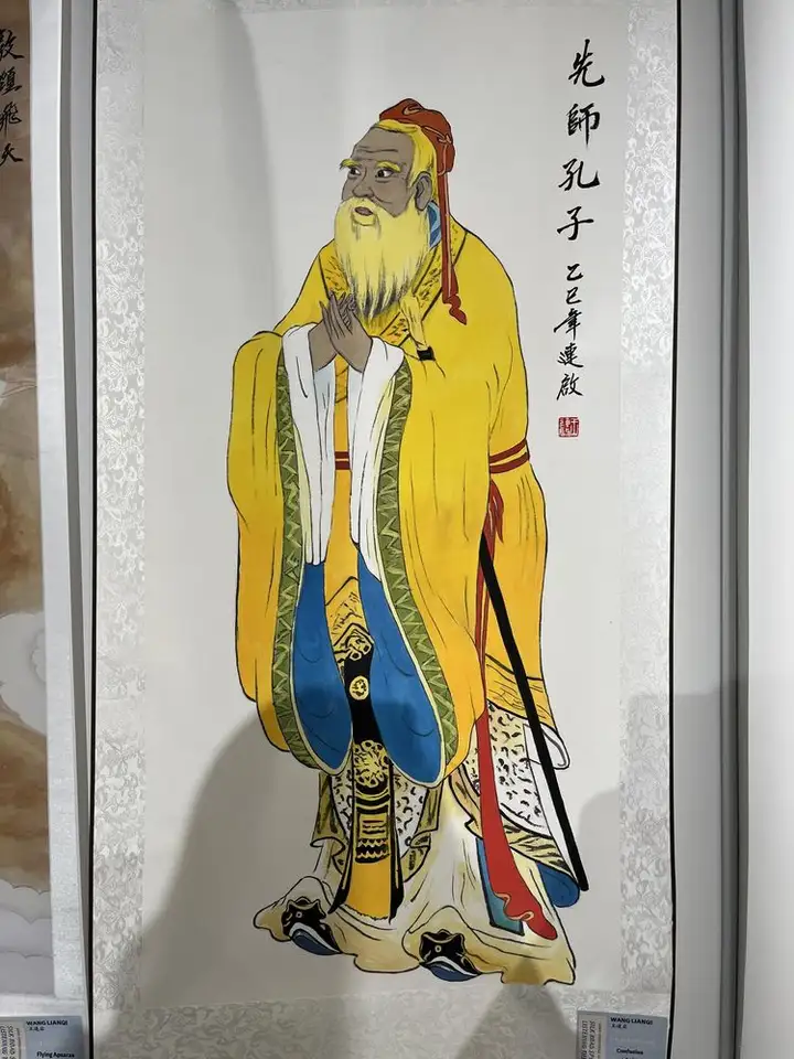 2025年作品《孔子》《敦煌飞天》《连年有余》在阿联酋迪拜美术馆展出,并被皇室收藏