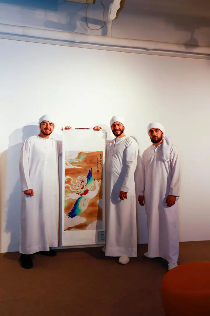 据悉,此次展览涵盖了油画、国画、山水、工笔、瓷器等多个艺术领域,其中中国艺术家代表冯定坤,李艳,黄鉴,詹慕白,袁兴荣,王连启,赵彦秋,屠志立,冯承业九位知名艺术家共16幅精品力作参展,并被其皇室收藏。不仅为中阿两国乃至全球艺术爱好者搭建起跨文明交流的重要平台,也成为落实全球文明倡议、深化中阿文化合作的生动实践。