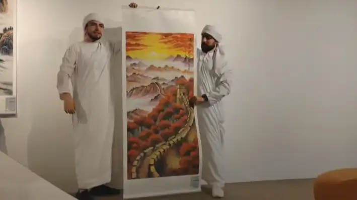 据悉,此次展览涵盖了油画、国画、山水、工笔、瓷器等多个艺术领域,其中中国艺术家代表冯定坤,李艳,黄鉴,詹慕白,袁兴荣,王连启,赵彦秋,屠志立,冯承业九位知名艺术家共16幅精品力作参展,并被其皇室收藏。不仅为中阿两国乃至全球艺术爱好者搭建起跨文明交流的重要平台,也成为落实全球文明倡议、深化中阿文化合作的生动实践。