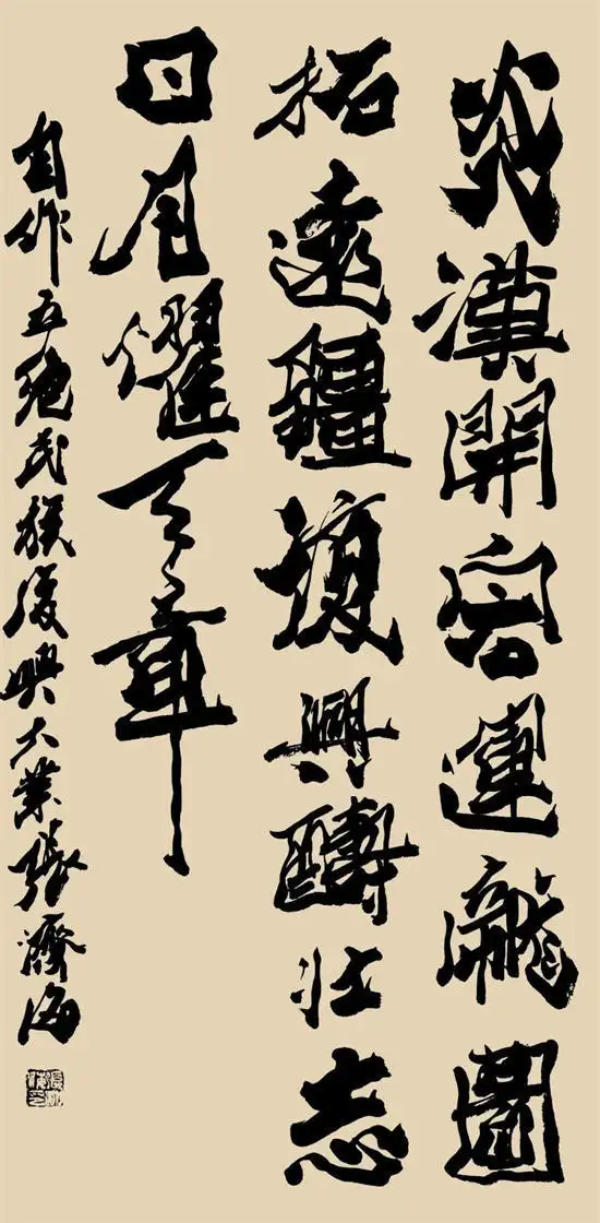 张济海:"二为"说起来真挺简单,就是为传统传薪火,为时代赋新声。"为传统传薪火",是因为我心里清楚,自己学得还远远不够,得把老祖宗留下来的智慧稳稳接住,可不能让这笔宝贵的文化财富,在我们这代人手里断了档;"为时代赋新声"呢,也是抱着学习的心态,琢磨琢磨当代人喜欢什么样的表达,想想怎么让老祖宗的书法艺术,能走进今天人的生活里。