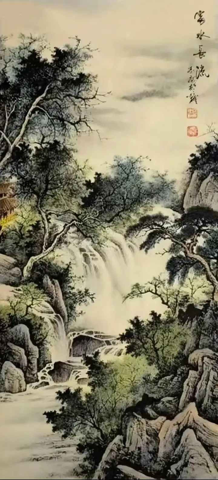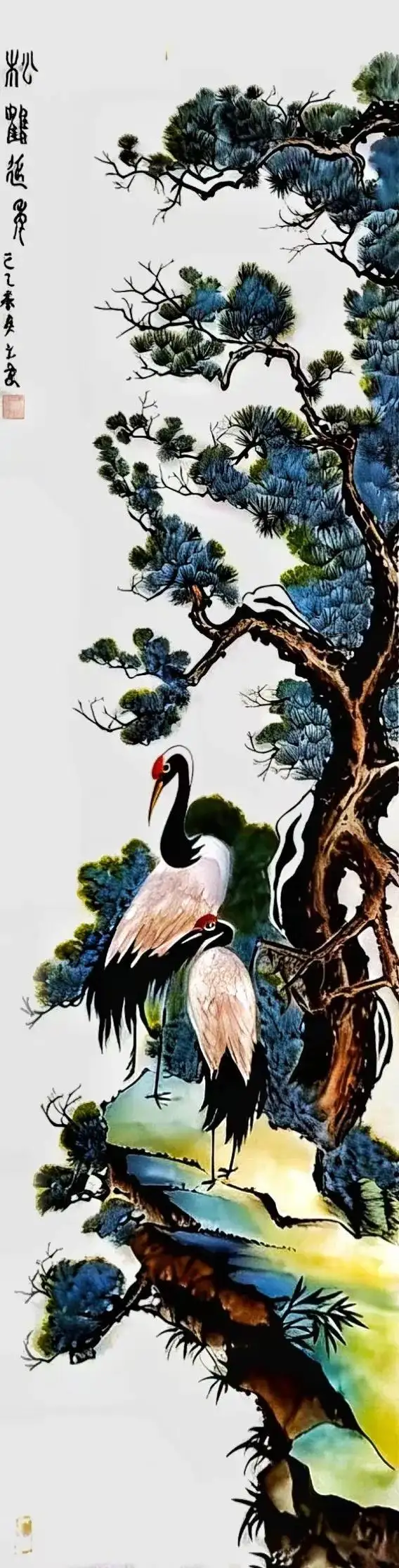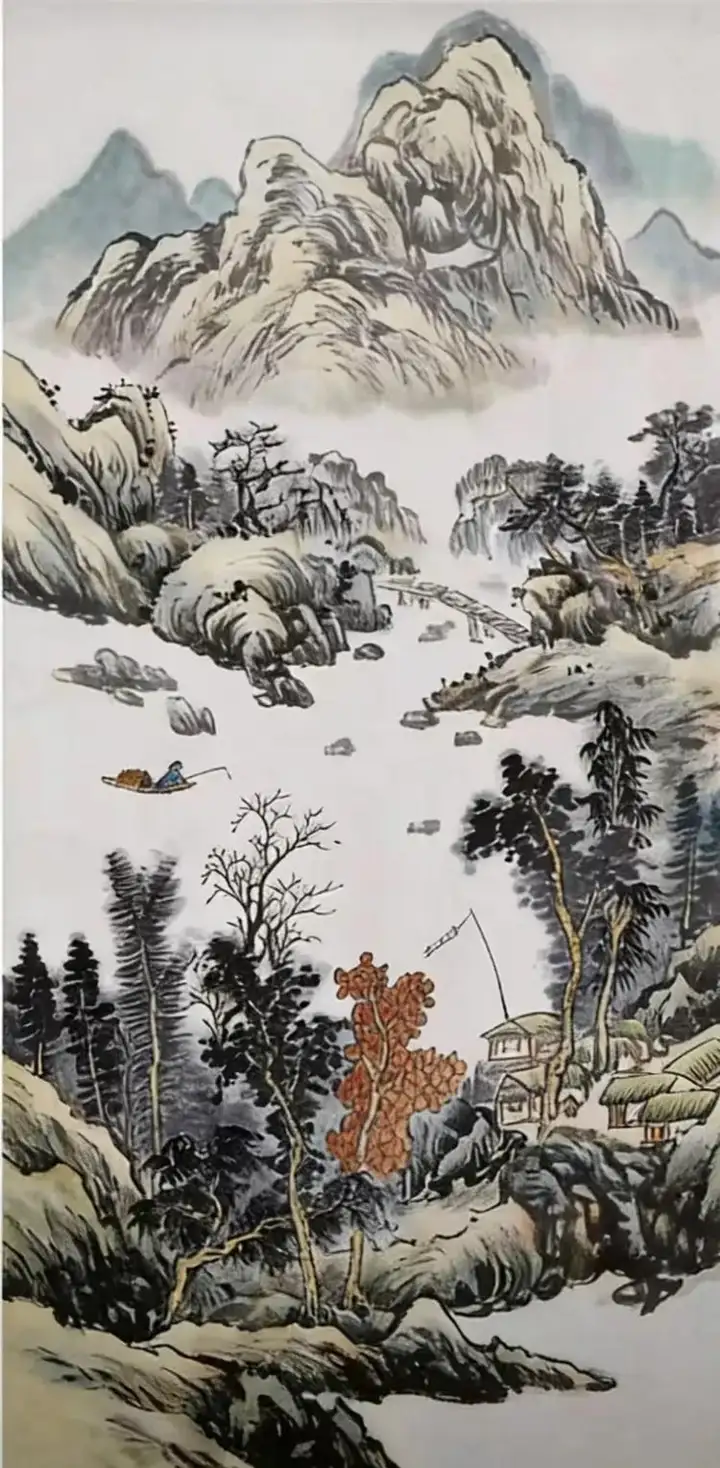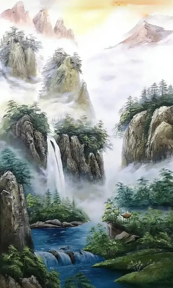 山水:融合北派雄浑与南派灵秀,以青绿重彩描绘中原山水,意境深邃悠远,代表作《太行雄姿》《云栖山居》;