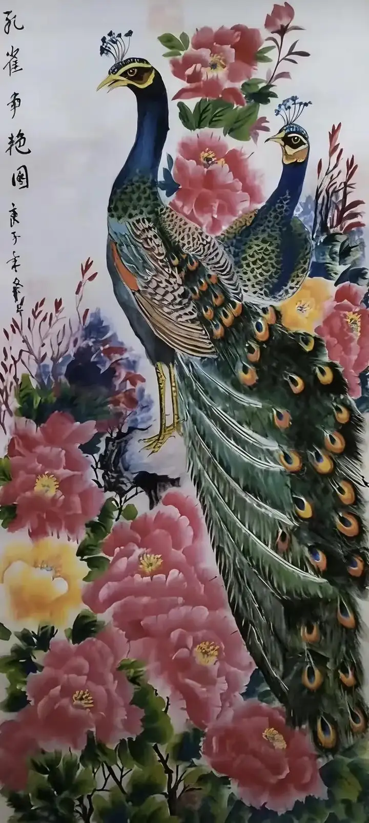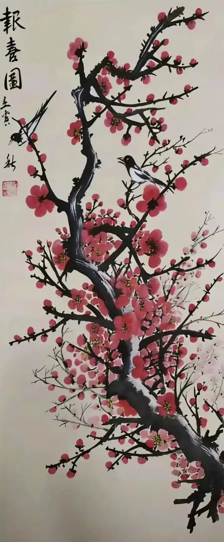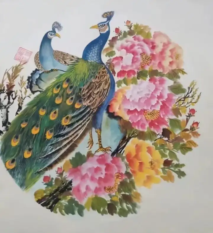国画花鸟:师法宋元工笔,兼取吴昌硕大写意,设色典雅,构图精妙,代表作《玉堂春》《荷风十里》;