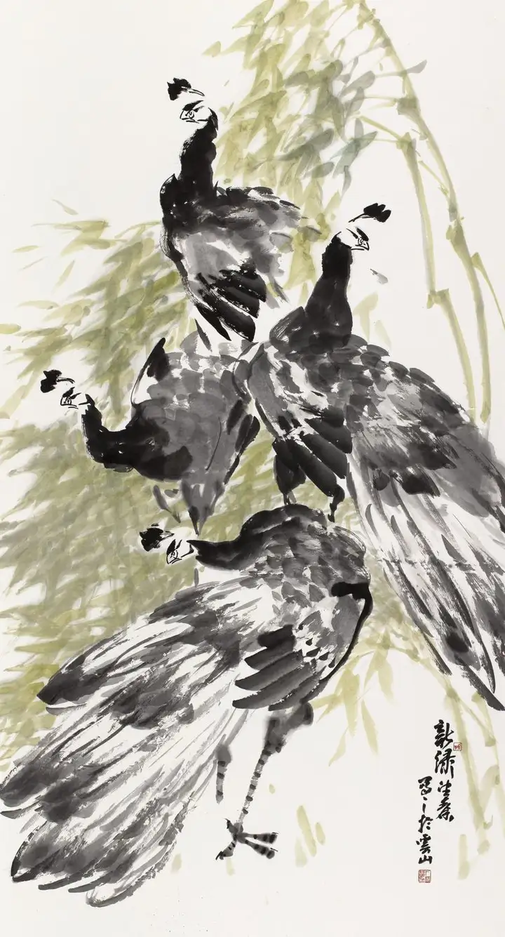 锦羽听春,卜绍基,中国画,136x68cm,2025年