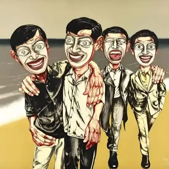 曾梵志的《面具系列1996 NO.6》在拍卖场上一鸣惊人拍出天价。他的作品模式化的夸张变形隐喻现代社会中没有个性和真我的躯壳。