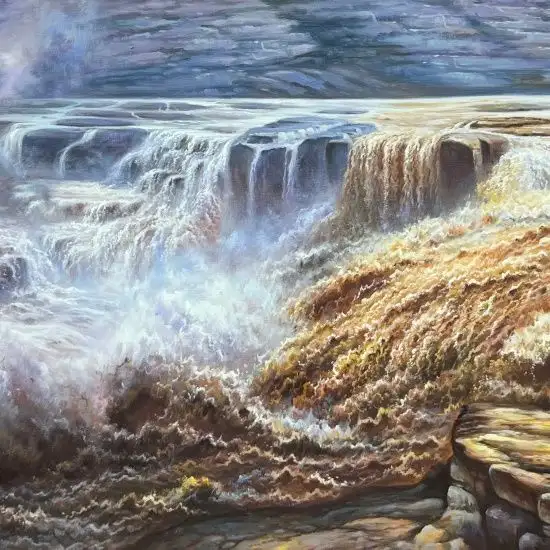 梁静在自然山水写实油画、新古典主义人物画以及忆境风景创作等领域形成了独特风格。他的代表作《金秋白桦》勾勒出白桦林的绚烂秋意,《黄河壶口》以磅礴笔触再现黄河的雄浑气势。