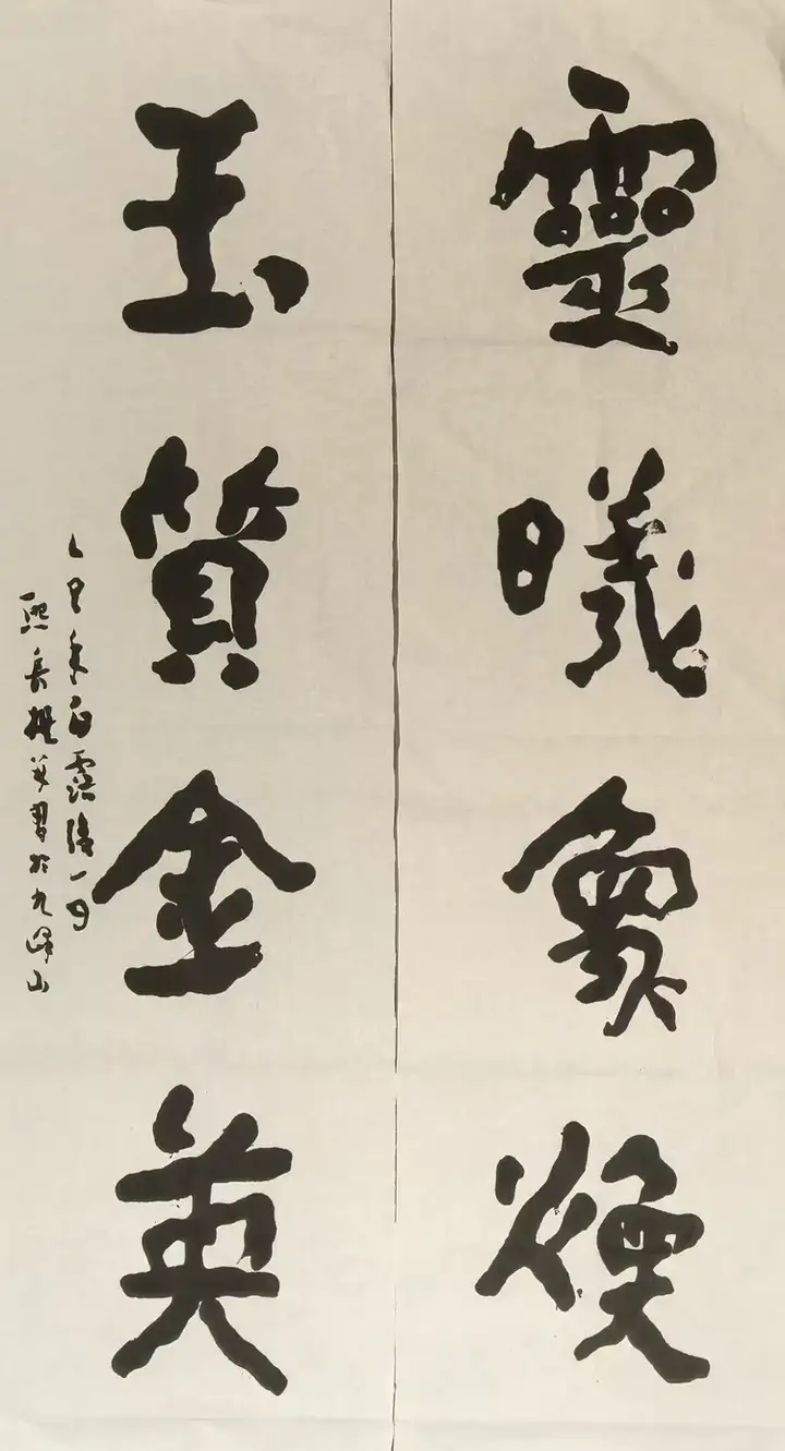 他临摹古碑时不满足于简单地复制字形,而是致力于还原古碑的原始精神与气韵,追溯书丹者挥毫瞬间的生命律动。通过对陶弘景书丹时的“仙家意趣”深入揣摩,运用“古朴苍茫”的笔法,再现碑刻未刻石前的流动气韵。