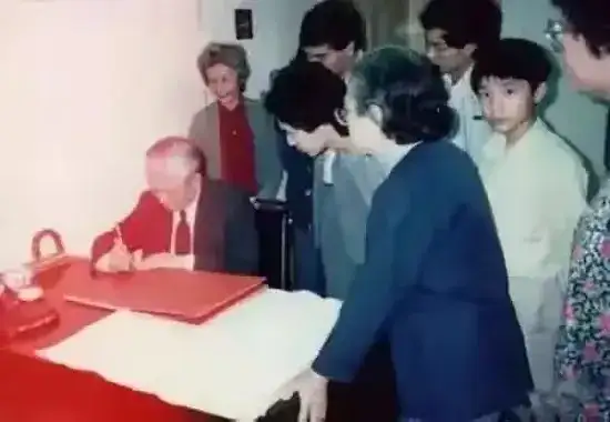 (本文作者(中)与领袖后人、毛主席女儿及周总理侄孙探讨中国传统文化)