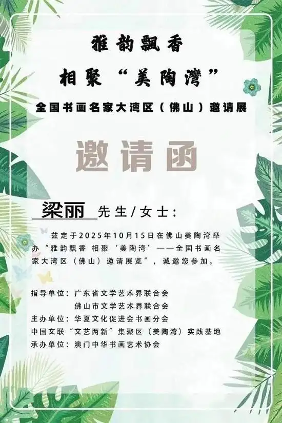 2025年10月15日梁丽应邀参加——雅韵飘香 “美陶湾”全国书画名家大湾区(佛山)展。