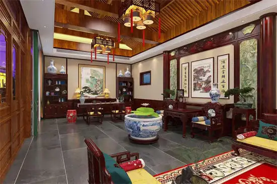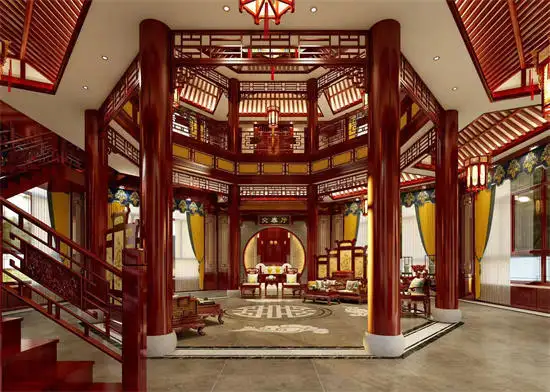 文化艺术馆以宫廷建筑为代表,采用中国古典建筑的室内装饰设计艺术风格。大门气势恢弘、壮丽华贵,具有高空间、大进深的特点,并且金碧辉煌、雕梁画柱。这种风格融合了庄重与优雅的双重气质,充分展现了建筑的威严和华丽。它不仅是一种建筑形式,更是文化的物质载体,通过建筑的外在表现,让人们直观感受到文化的魅力。