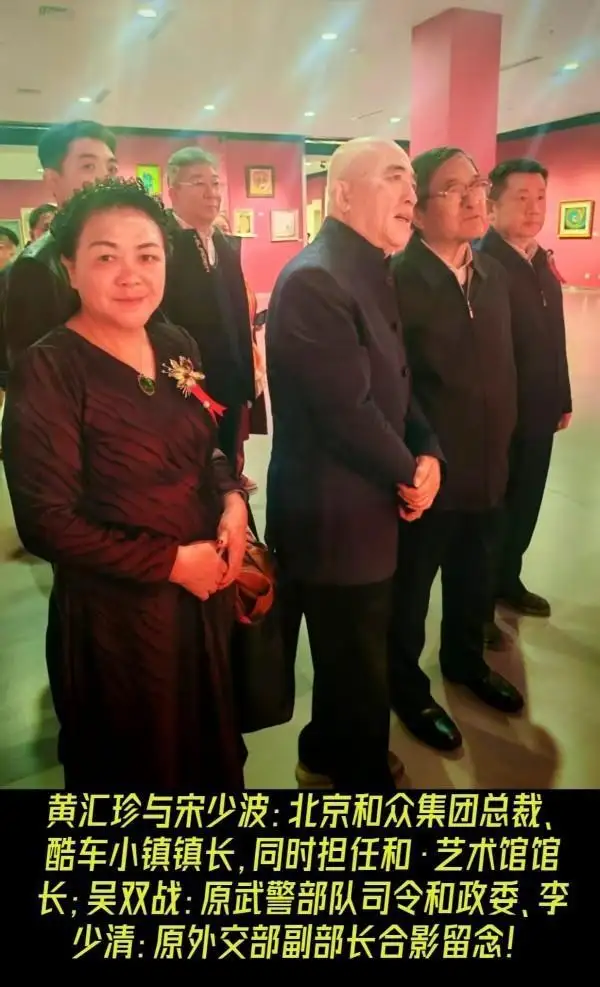 黄汇与宋少波:北京和众集团总裁、酷车小镇镇长,同时担任和·艺术馆馆长;吴双战:原武警部队司令和政委、李少清:原外交部副部长合影留念!