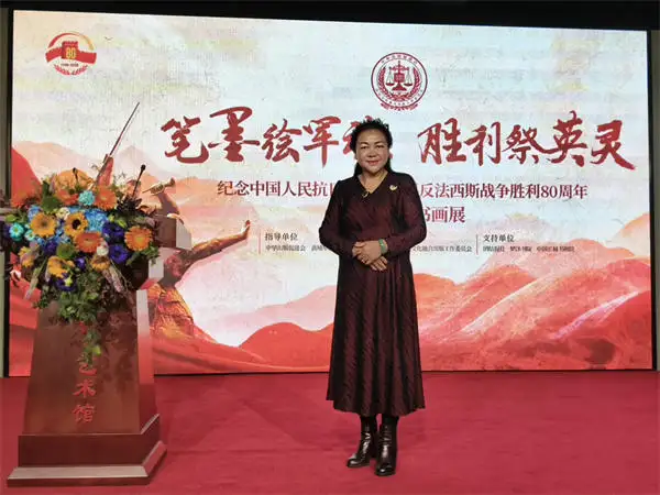 在北京和·艺术馆开幕式现场气氛庄重而热烈。主办方代表在致辞中深情回顾了十四年抗战的烽火岁月,向三千五百万英勇牺牲的中华儿女致以崇高敬意,强调此次展览是以笔墨追思、以丹青传情,让历史在艺术中获得永生,让抗战精神在传承中历久弥新。