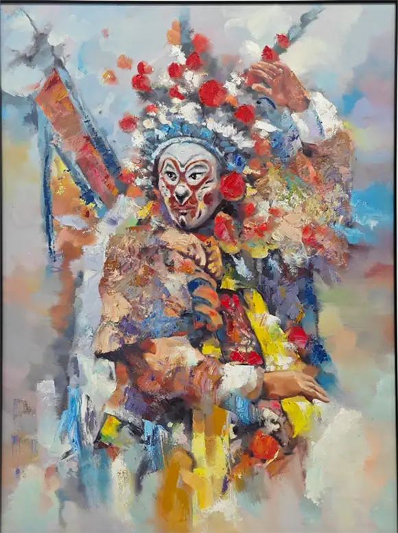 戏曲人物系列:将油画的立体光感与中国画的笔墨意境融为一体,形神兼备,气韵生动,堪称中西人物画融合的典范。