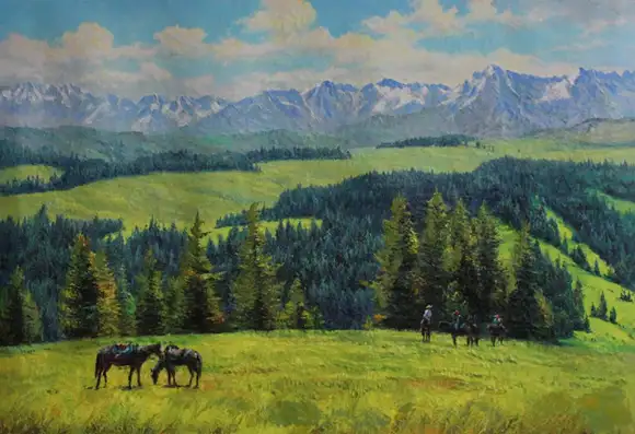 而赵进才的作品,更是稀缺中的稀缺 —— 国内同时具备 “国家级收藏背书 + 非遗技法传承 + 跨画种创作能力” 的油画家不足 50 人,他的墨彩油画风格独树一帜,无直接竞品。更值得关注的是,2015 年以来,其山水类油画拍卖成交价年增速超 15%,马题材作品单幅最高成交破百万元,权威背书 + 市场认可,让首发作品具备 “低风险、高潜力” 的收藏属性。