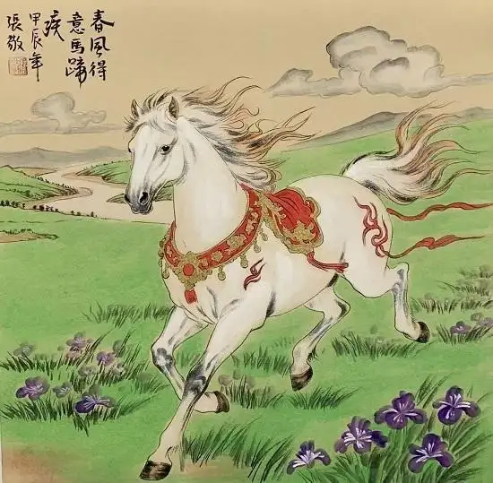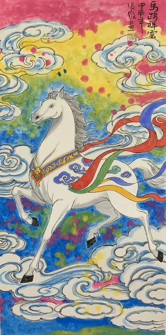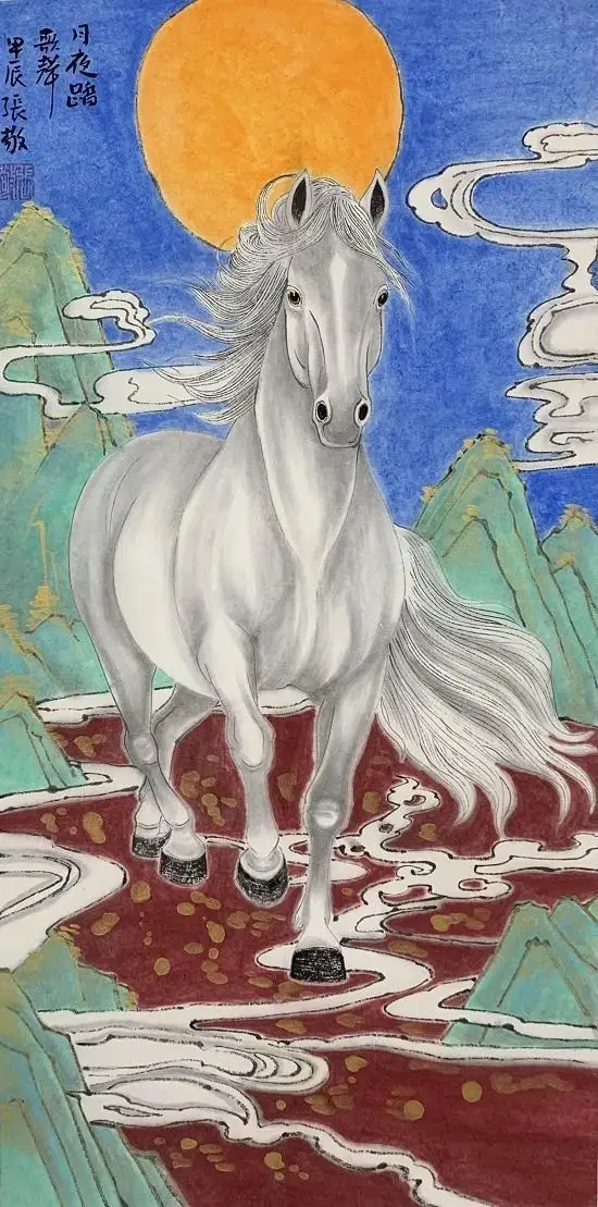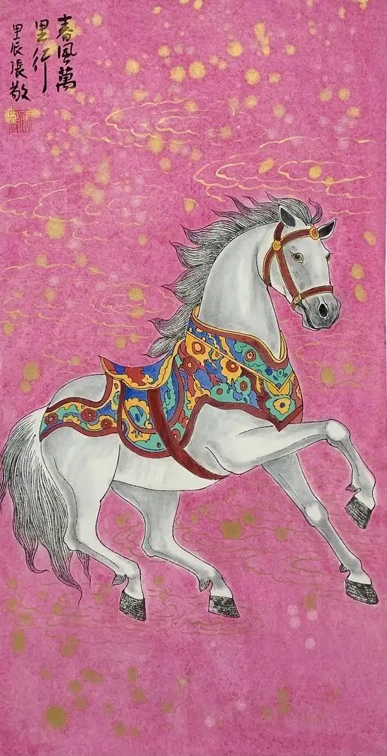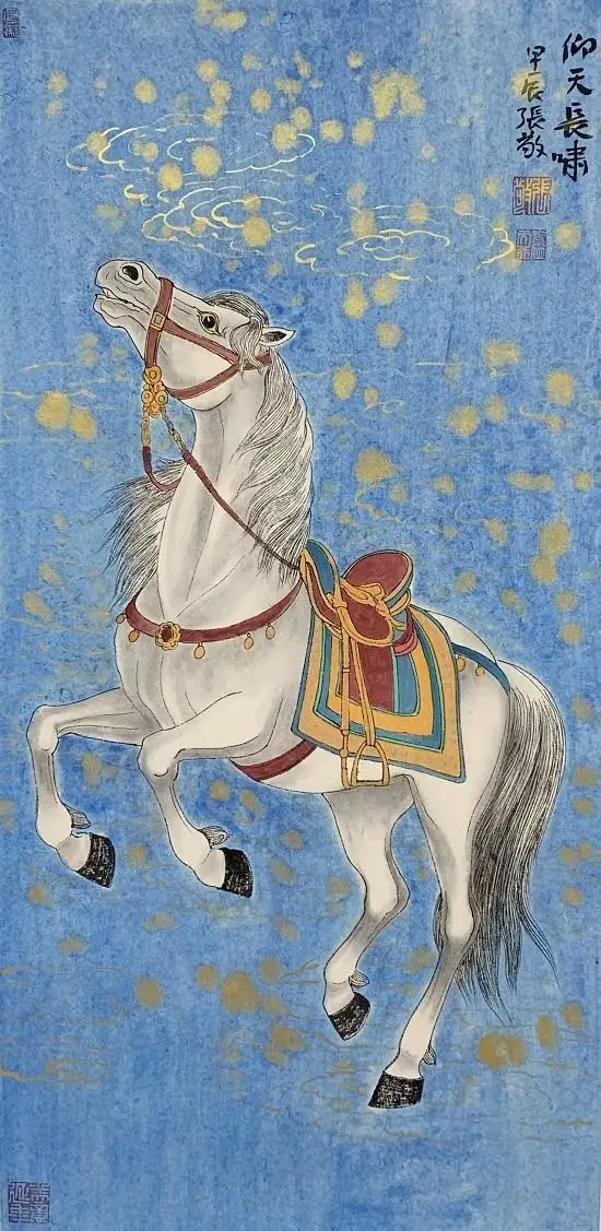 主题深化:张敬作品不仅仅是描绘马的形态美,更会深入挖掘马的精神内涵——如自由、力量、勇毅、忠诚,或将其与人文、历史背景相结合。