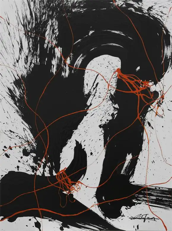 作品国际著名艺术家秦风的艺术风格以后现代水墨为核心,融合东西方艺术语言,形成独特的视觉表达方式。其特点主要体现在以下几个方面: