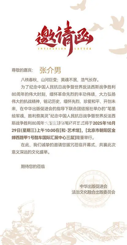 丹桂飘香,2025年10月29日,在纪念中国人民抗日战争胜利80周年的重要时刻,一场以“笔墨绘军魂,胜利祭英灵”为主题的大型主题书画展在北京和·艺术馆盛大开幕。本次展览汇聚了众多当代著名书画艺术家的精品力作。