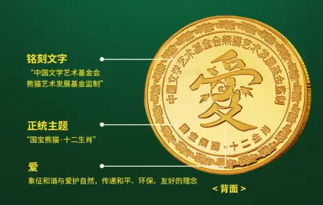 背面镌刻中国文学艺术基金会熊猫艺术发展基金官方logo,传递和平、环保、友好的理念。