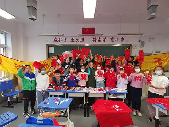 2021年11月5日走进中国人民大学附属小学教孩子们实际剪纸活动。