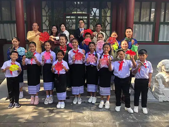 2023年10月9日受中铁部、中联部、和平基金邀请为老挝三十多个学生和老师剪纸和面塑活动。