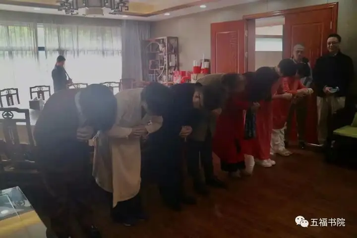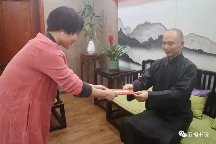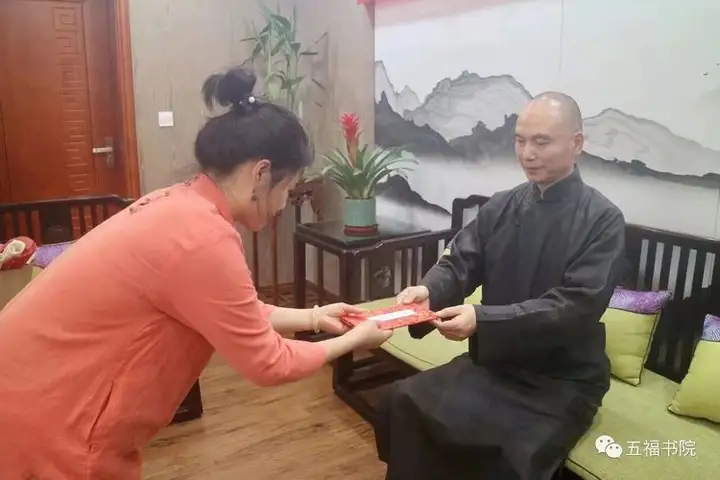 今天我作为拜师主礼,感到既忐忑又激动,感恩老师及诸位师兄的厚爱!我虽然早诸位数年入门,但各门功底仍然肤浅,尤其看到诸位师兄近期的进步,给我鞭策,让我发奋精进!我跟老师学习书法及国粹近十年,老师的勤奋与慈悲总让我历历在目!老师仙家书风的形成,是其数十年以书修道所致。所以我们要以书为师 以书为戒,不断提升自我素质。为什么说以书为戒,因为法书里面的文字大多能让人警钟长鸣。“戒”其实也是在修正个人的行为,使生活习惯规律,逐渐成一种健康的生活方式。故有戒方有静,无论是琴、棋、书、画皆是在静中洞见内在自我,明心见性。纲举目张,道通理明。无论是文理、商理还是事理,皆从道出,老师教我们的是道,其余各理就让我们在戒中悟出吧!