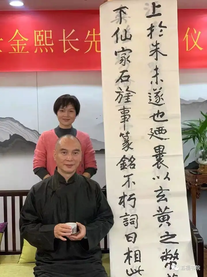 本人梁子建,是土生土长的中山人,今年51岁。从小跟随父亲在孙文西路马巷的中山家具厂雕刻艺术部,不幸的是在我七岁时父亲中风卧床在家22年,没接受到更多熏陶。我从小自学书法,学临柳体,启功体和陈景舒老师字体而一直不得法。有幸于2021年由好朋友引荐拜会了五福书院金老师,老师的“高古,雄浑,大气,拙穆”的书体深深打动了我,我在网上搜寻他的作品更发现老师为人正直大爱,无私。我人生找到了对艺术追求的方向,也感恩老师给予我机会,拜师学艺,决心在努力做好本职工作同时,跟随老师学好书法,学好做人,为社会奉献自己绵薄之力。