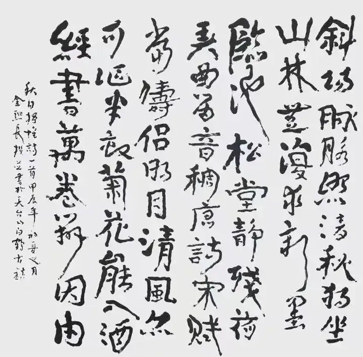 习书如修道,需身心灵合一。我创作时,两脚平铺,周身中正,舒心展眉,左手按桌,意守丹田,徐徐以鼻吸气,缓缓以口呼气,使精气神合一,方下笔有神。